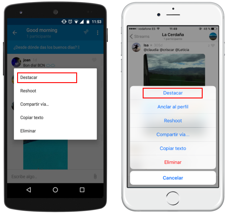 Destaca un shot desde la app: